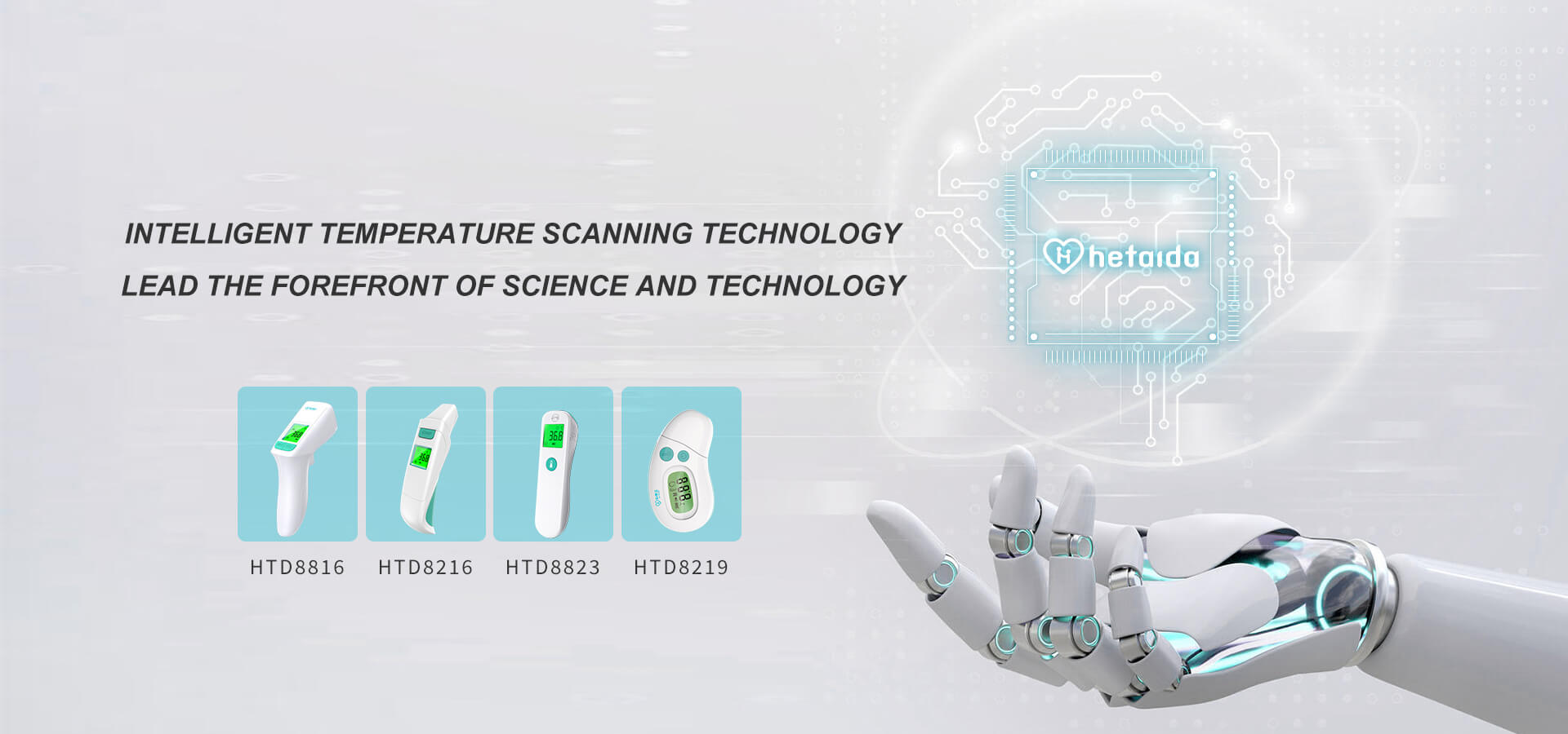 Hetaida (Chinese Name: 和泰達), founded in 2009, is one of the brands of Hetaida Technology Co., Ltd. It is a leading service provider of home medical devices and solutions. Hetaida has a diversified technical team composed of clinical experts, masters and doctors for more than 15 years,With strong technological innovation advantages, Hetaida obtained more than 100 domestic and foreign technology patents. Adhering to the service tenet of "guarding the beginning of health", we have independently developed a series of monitoring and management instruments, expanded product line to blood pressure monitor, nebulizer, hearing aid, nasal aspirator, clinical electronic thermometer ...etc home medical devices Among them, the core product, the infrared thermometer, has a sales network in more than 100 countries and regions around the world, covering nearly 100000 medical institutions and top three hospitals.